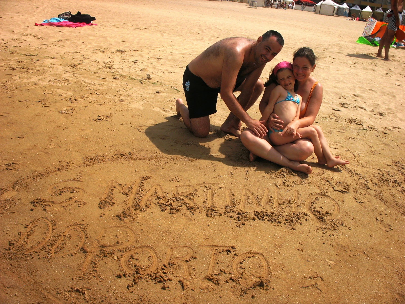 De manhã fomos mais uma vez à praia. Estava vento, mas mesmo assim deu para jogar raquetes e bola. O Henrique e o pai fizeram um lindo castelo onde nós brincamos de príncipes e princesas.